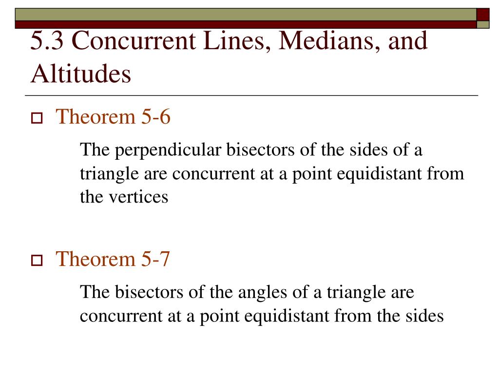 Bisectors Medians And Altitudes Section Ppt Download from slideplayer.com The point of concurrency created by altitudes. Once you write down this equation, you can begin to find the equation of the perpendicular. An angle bisector is a line that cuts an angle in half. Every altitude is the perpendicular segment from a vertex to its opposite side (or the extension of the opposite side) (figure 1). This both bisects the segment (divides it into two equal parts), and is perpendicular to it. When you think of a triangle the basic constructions you think of are perpendicular bisectors of the sides, angle bisectors, altitudes, and medians. Medians altitudes angle bisectors perpendicular— presentation transcript The special property that the incenter has is that it's perpendicular distance to all three sides of the triangle are the same.